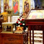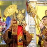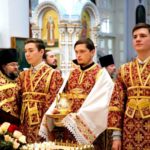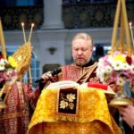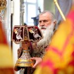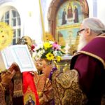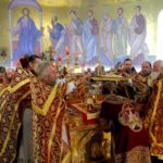 После Таинства Причастия был отслужен благодарственный молебен ко Господу в честь именинника, а затем священнослужители и миряне поздравили своего архипастыря с днем тезоименитства.