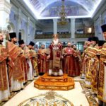 Песнопения Литургии исполняли левый хор собора (регент Т. Митронина) и хор учащихся регентского отделения ТДС (регент А. Сладкова).