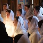 В семинарском храме преподобного Иоанна Лествичника за богослужениями песнопения исполнили первый женский хор учащихся факультета церковно-певческого искусства МДА под управлением студентки 3 курса Ольги Беляевой и второй женский хор учащихся факультета под управлением студентки 3 курса Анастасии Базюк.