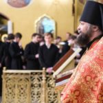 В конце Божественной литургии владыка ректор и сослужащее духовенство совершили славление апостолу и евангелисту Иоанну Богослову, после чего епископ Феодорит обратился к молящимся с архипастырским словом.