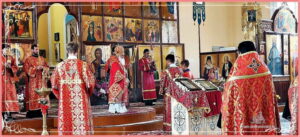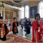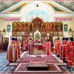 Ему сослужили: благочинный Самаркандского благочиния протоиерей Роман (Загребельный), настоятель Свято-Алексиевского Собора иерей Игорь (Бабаков), иерей Тимофей (Фишелев), иерей Владимир (Матвеев), иерей Олег (Лин), диакон Михаил, диакон Фортунат, диакон Сергий.
