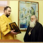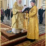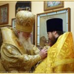 На Малом входе митрополит Викентий вручил награду отцу настоятелю Свято-Алексиевского собора епархиальную юбилейную награду – медаль в честь 150-летия Ташкентской и Туркестанской епархии.