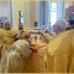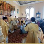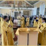 Его Высокопреосвященству сослужили: благочинный Самаркандского округа протоиерей Роман Загребельный, настоятель храма иерей Игорь Бабаков, иерей Тимофей Фишелев, иерей Олег Лин, диакон Рустик Ковалев, диакон Михаил Межовиков.