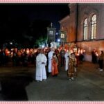 А вечером Субботы храм наполняется толпой нарядных, радостно-возбужденных людей, с пакетиками куличей и яиц, со свечами и фонариками в руках.