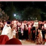 Отслужена короткая служба полунощницы и все замерли в ожидании… без пятнадцати двенадцать… Наш батюшка отец Игорь выходит из алтаря и начинается Крестный ход. И ровно в 12 часов ночи раздаётся радостный и так ожидаемый возглас батюшки: «Христос Воскресе!» И отклик прихожан с чувством радостного ликования в сердцах: «Воистину Воскресе!»