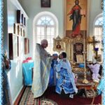После Божественной Литургии прошло славление перед иконой Покрова Пресвятой Богородицы.