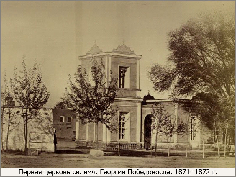 Сегодня уже практически никто не знает о существовании первого храма святого Георгия Победоносца. О нём сохранились лишь редкие отрывочные сведения в мемуарах старых туркестанцев и историков, а так же фотография из «Туркестанского альбома».